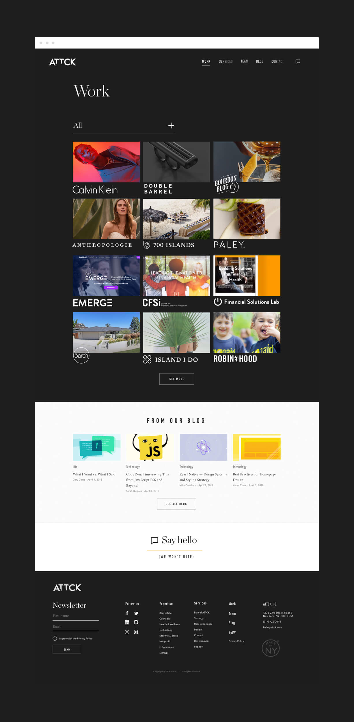ATTCK is a web design and digital marketing company located in NYC. The company needed to express its sophistication and skillset throughout from the logo to the website. Since the company wanted to connect people with digital solutions, we choose the idea of the constellation that also represents the universe. I participated in from sketching to finishing to create UI, photos, and animations.