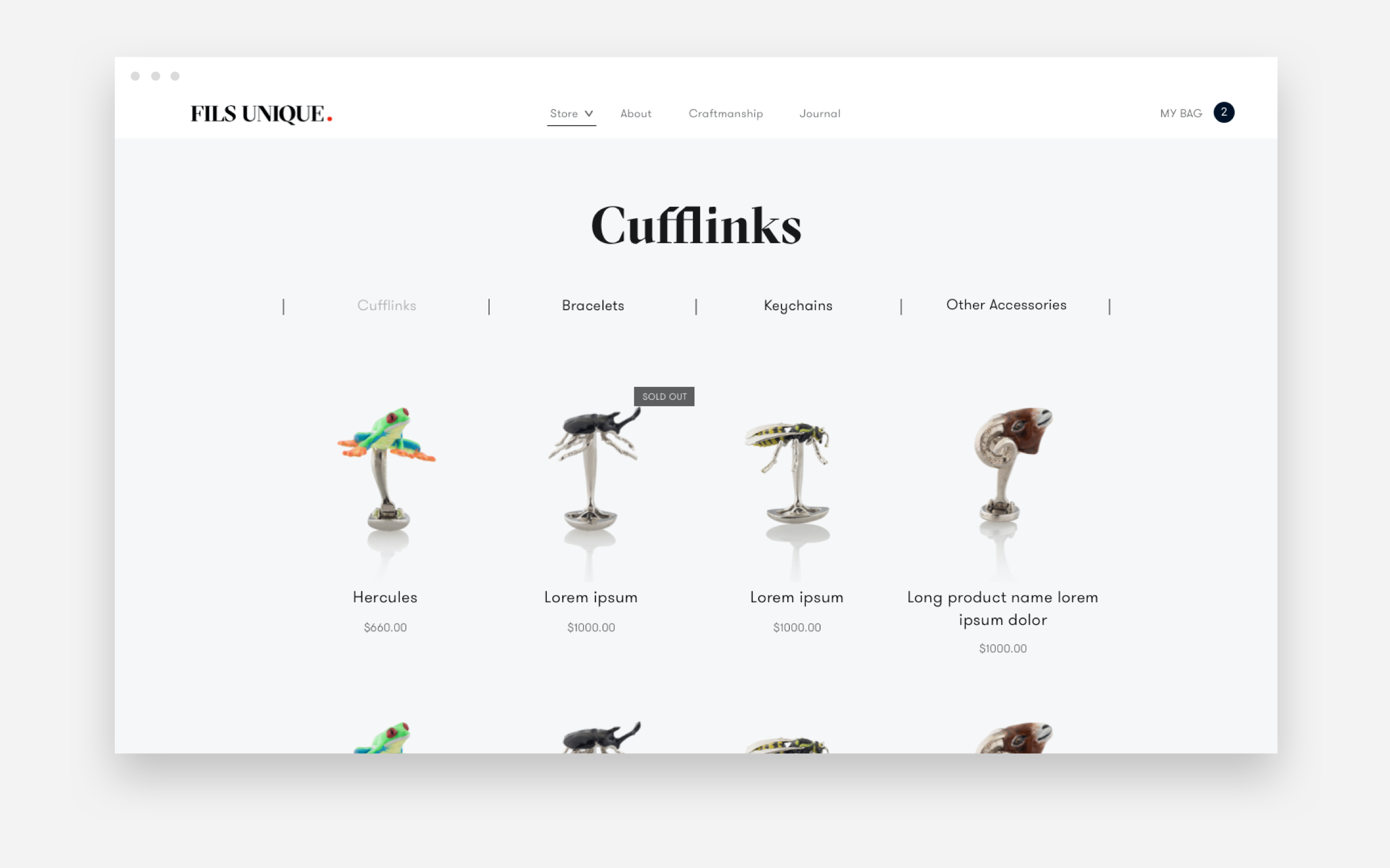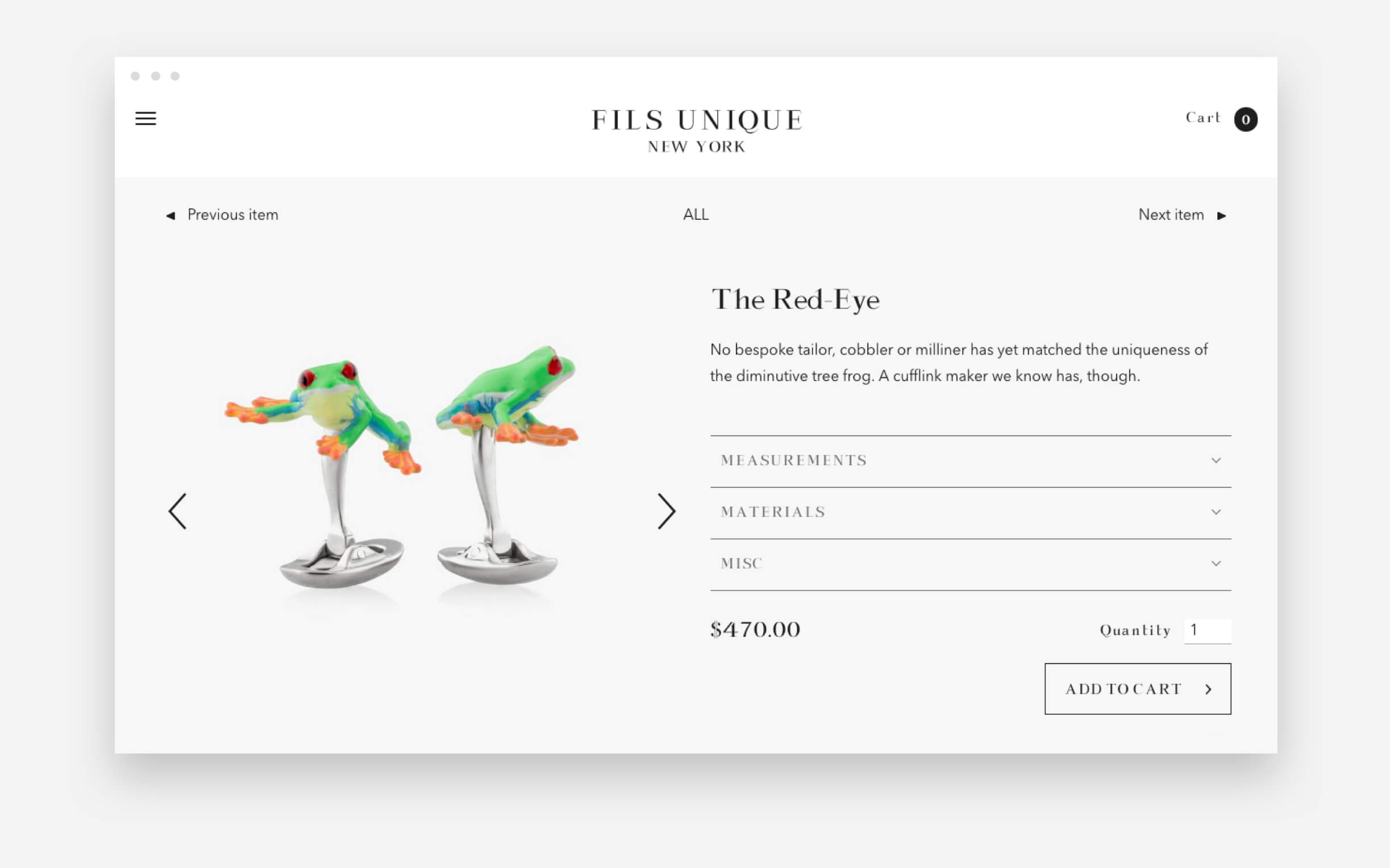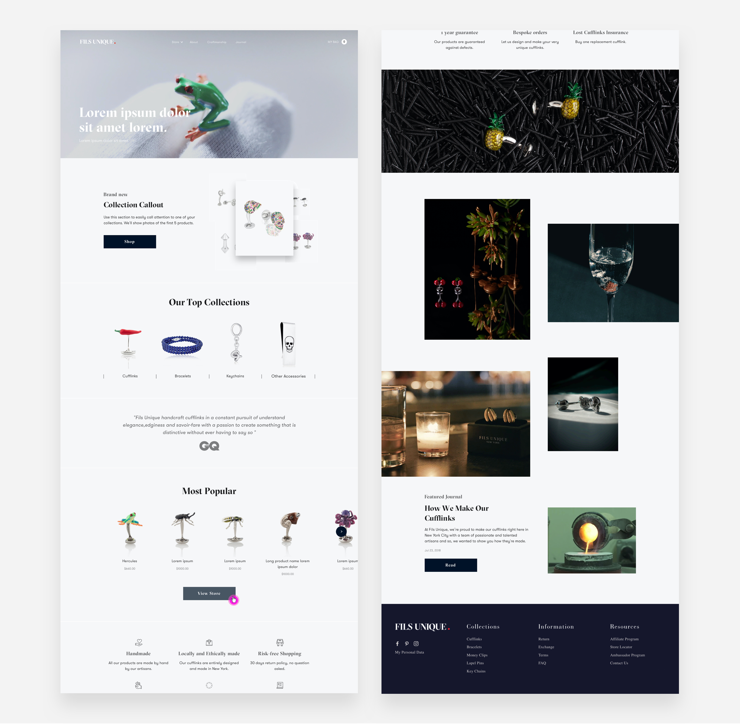 Fils Unique is a New York-based brand that handcrafts playful and sophisticated cufflinks. They needed help to develop their digital aesthetic reflecting the product’s elegance. I designed their website two times since their targeted audience has changed.
